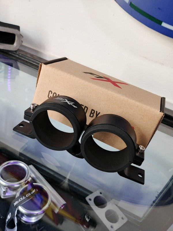 Soporte doble con un estilo elegante, hecho de aluminio anodizado y mecanizado para sujetar bombas de nafta o filtros de 55mm a 60mm (Bosch 044, AEM, FTX). Ideal para montar bombas de combustible gemelas o una bomba y un filtro en conjunto. Incluye insertos de goma antivibración para bombas de combustible Tornillos de cabeza Allen de acero inoxidable