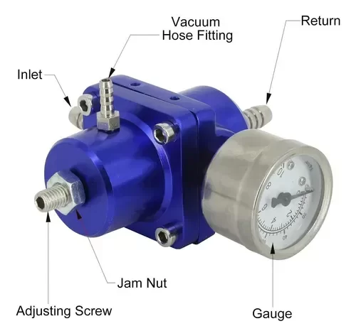 Este regulador se utiliza para mantener la presión estable en el sistema de combustible. Incluye un diafragma incorporado hecho de material especial, este controla la apertura y el cierre de la válvula de presión lo que tiene un cierto efecto amortiguador en la presión promedio del combustible y hace que la presión sea más estable.