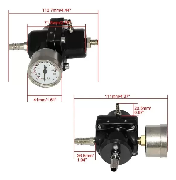 1 regulador de presión de combustible // 2 mangueras de 4mm y 8mm // 1 Kit de accesorios para montaje